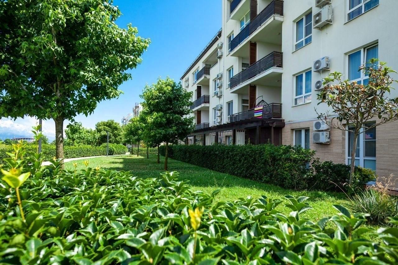 Нашим гостям доступна вся закрытая инфраструктура ГК ''Альфа-Сириус'' (бывший ГК ''Имеретинский''): Природный парк, открытые бассейны, детские площадки, прямой выход к морю.