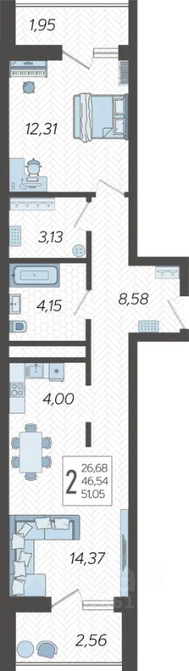 Продаётся 2-комнатная квартира в строящемся доме (Корпус 14), срок сдачи: II-кв. 2026, общей площадью 51.05 кв.м., на 3 этаже. Жилой комлекс ''Кислород'' представляет комплексную застройку, состоящую из 20-ти этажных монолитных домов.