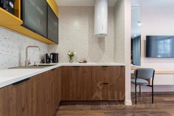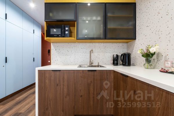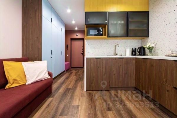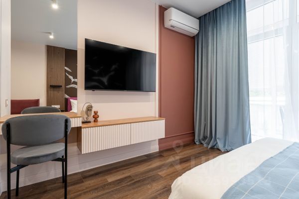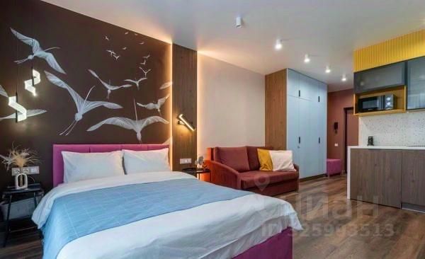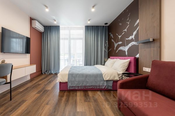 Полностью готова к проживанию: Студия оснащена современным дизайнерским ремонтом, качественной мебелью и всей необходимой бытовой техникой.