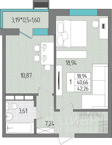 Общая площадь42,26 м2