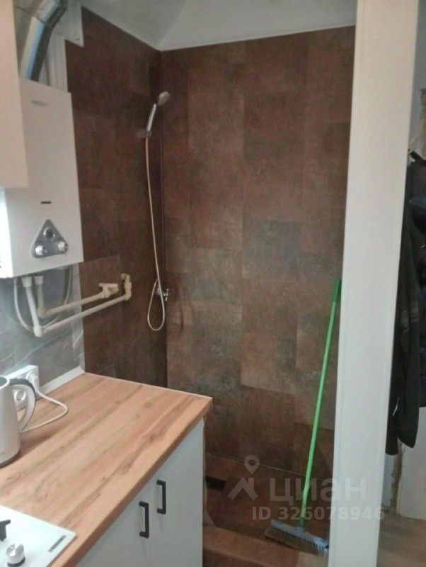 Комната расположена в двухкомнатной квартире на третьем этаже трехэтажного ''Сталинского'' дома из кирпича, с толстыми стенами. Это наш любимый старый Краснодар. В комнате нормальный ремонт. вход в комнату отдельный из общего коридора. Кухонная зона частично отгорожена, что видно на фото. Дверь в собственный туалет из коридора. Душ отгорожен в кухонной зоне.