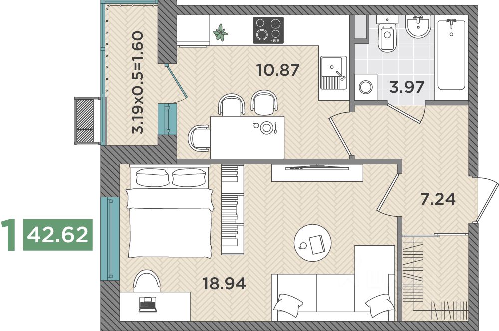 Общая площадь42,26 м2