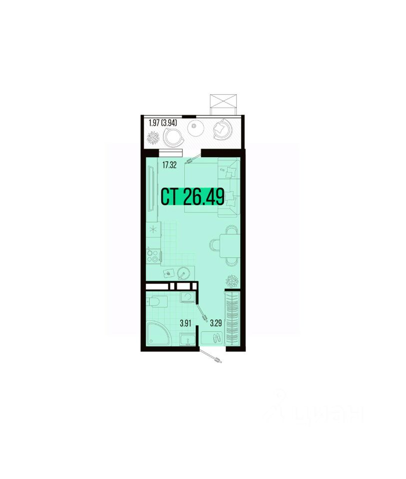 Общая площадь26,49 м2
