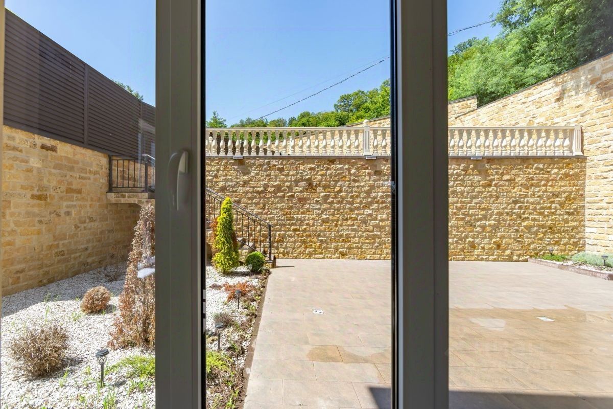 О доме и участке: - Дом 160 м², 2 этажа, потолки 3 м, панорамные окна - Участок 4 сотки, огорожен - Парковка на 2 автомобиля - Предчистовая отделка — удобно сделать ремонт под свой дизайн - Конструктив: монолитный каркас + газоблок (в полный блок) - Фасад — натуральный дагестанский камень