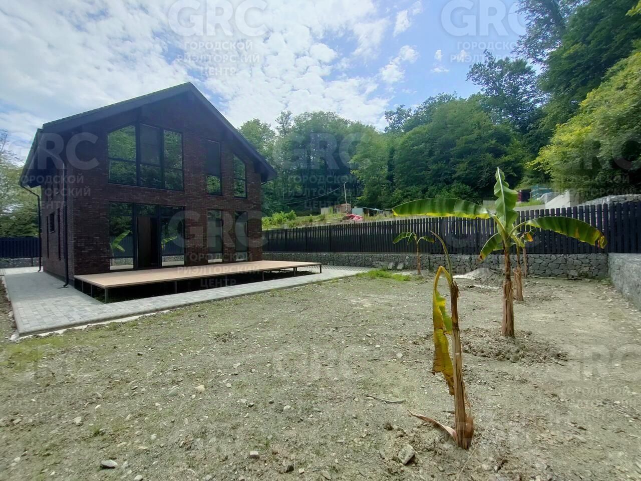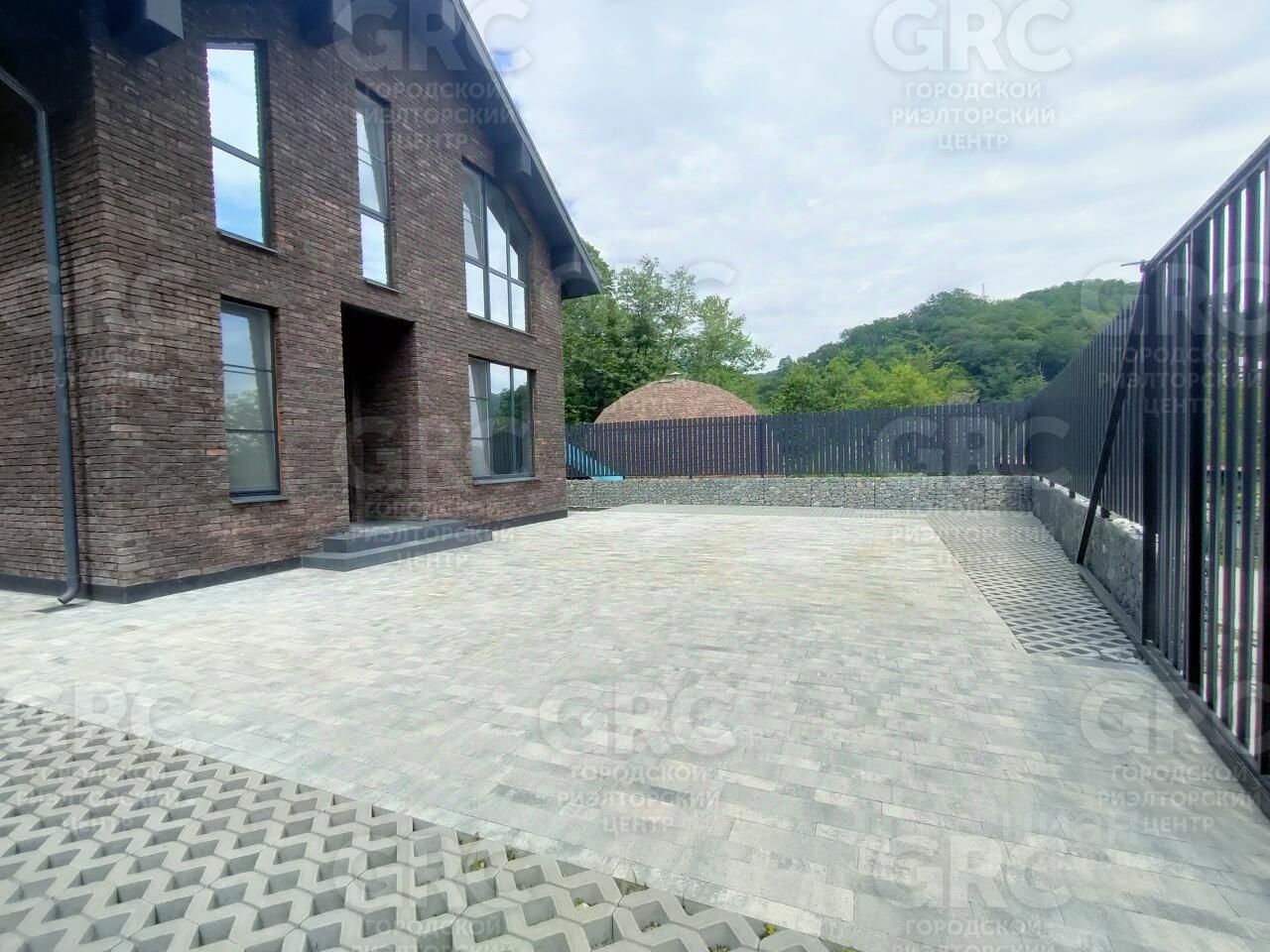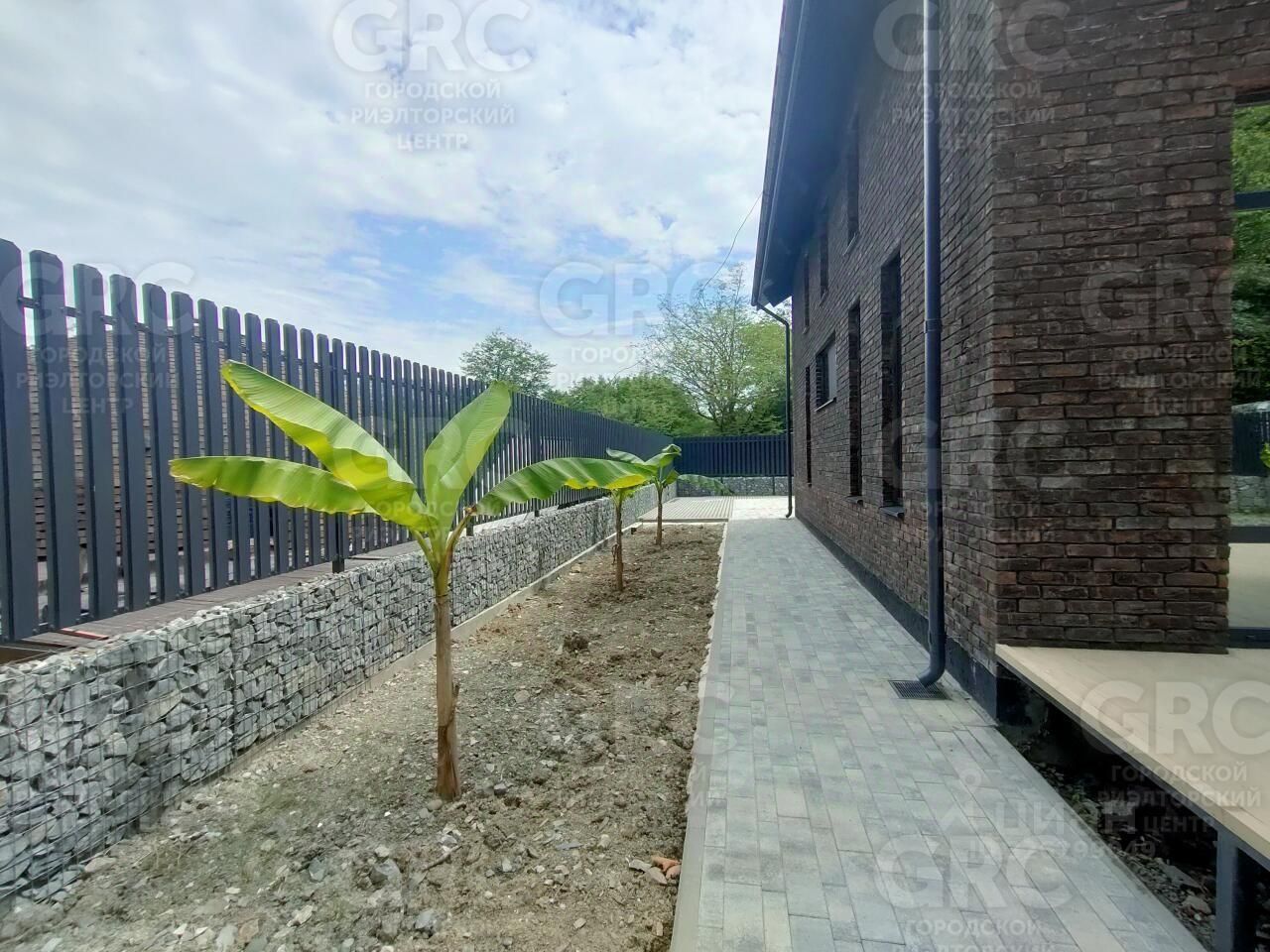 Абсолютно ровный участок, есть место под бассейн, высажены пальмы и деревья. Территория перед домом выложена брусчаткой.
