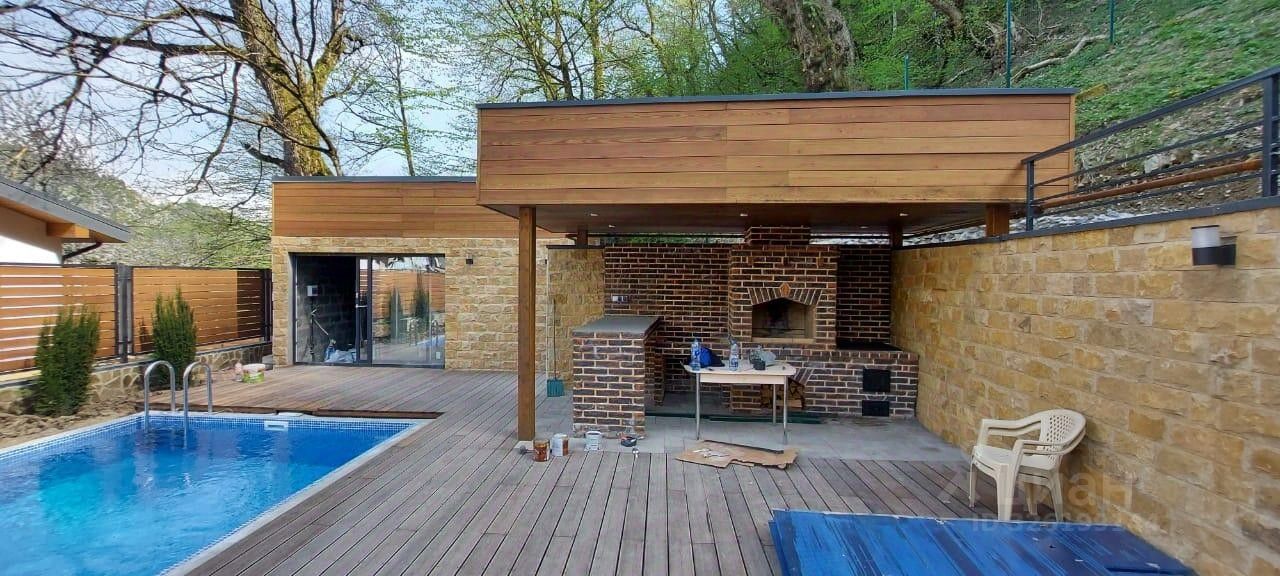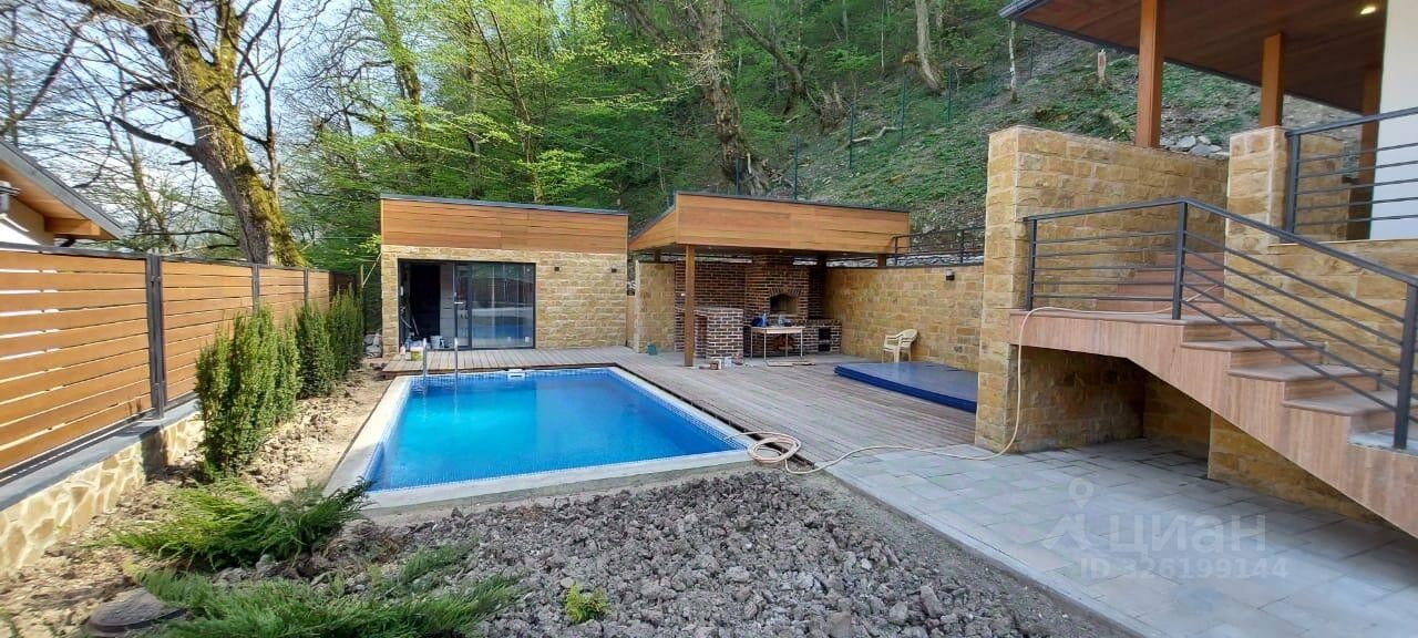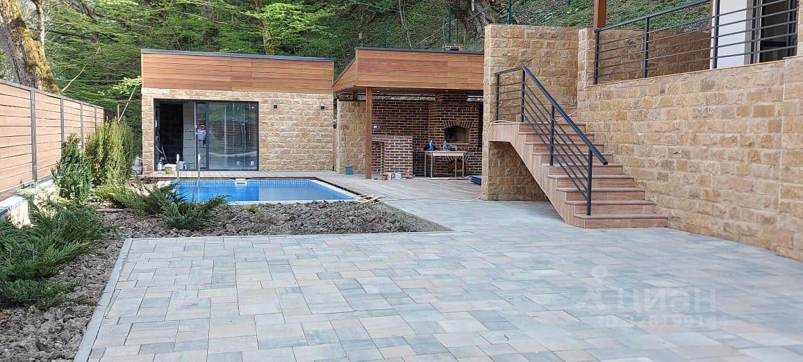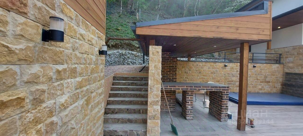 Дом в стиле ''Шале'' в Красной поляне! Дом в 3 этажа, включая цокольный этаж, расположен на участке 8,6 соток (ИЖС). окружен с двух сторон национальным парком. Внутренняя отделка дома -под чистовую. Фундамент: монолитная плита. Материал здания- монолит с частичным заполнением керамзитоблоками. Кровля -скатная, гибкая черепица. Перекрытия - монолитные. Фасад дома- утеплитель пеноплекс 10 см, Облицовка цоколя, стен - искусственный камень Kamrock,облицовка стен, парапетов - декоративная штукатурка. Отделка стен деревянной доской 100*20мм(термодоска). Окна- металлопластиковые. Входная дверь - алюминиевый профиль. Все коммуникации подключены: - водоснабжение: центральное, - канализация: центральная, - газ: собственная котельная, - Электричество: 15 кВт.
