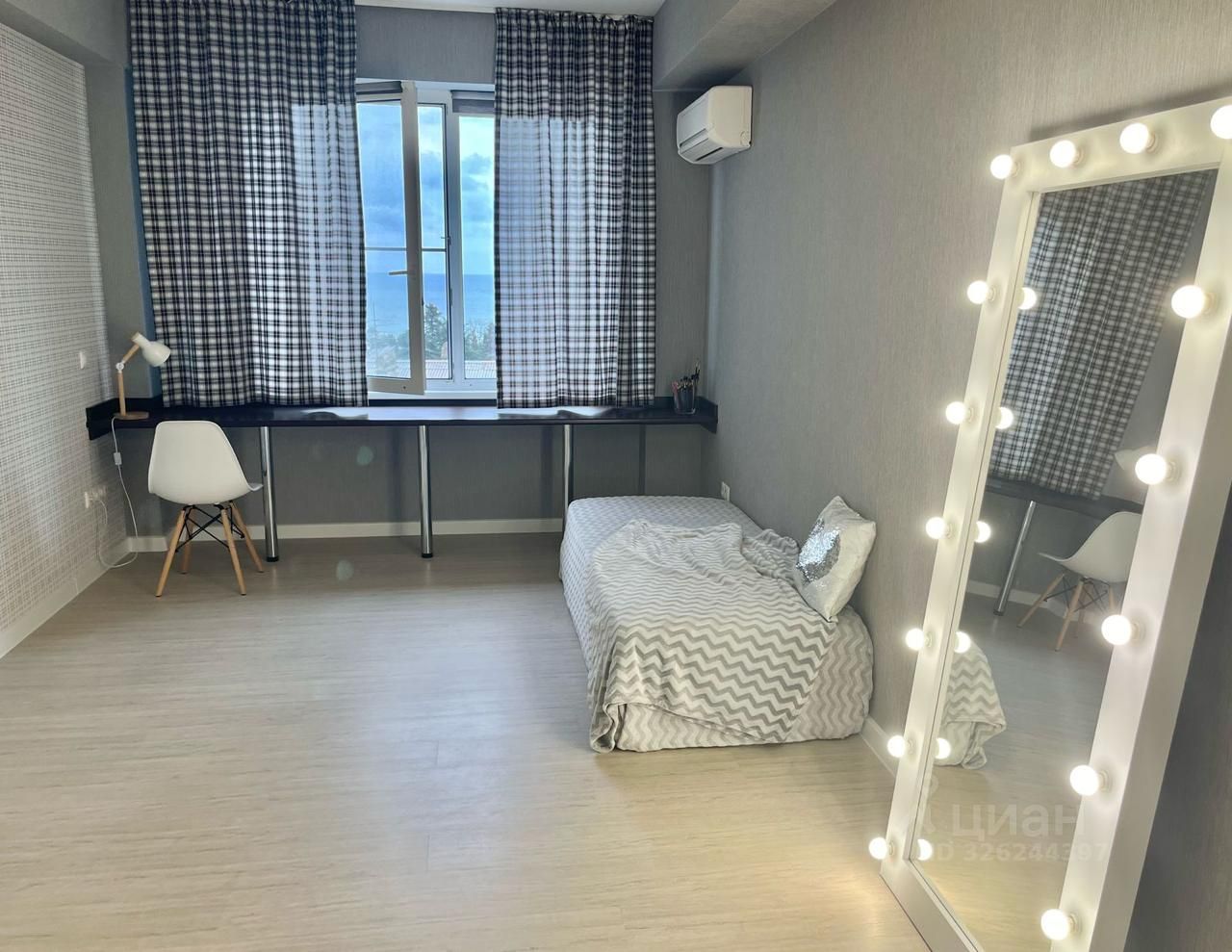 Планировочное решение: кухня-гостиная, 2 выделенные спальни, открытый балкон с видом на город и море. Выполнен ремонт в светлых оттенках.