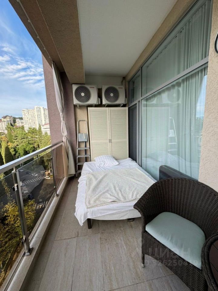 Квартира распланирована в мастер-спальню, санузел с ванной, кухню-гостиную, отдельный кабинет, гардеробную и второй санузел с душевой кабиной, большой балкон с кроватью и креслами для отдыха. Вся мебель и техника остаются новому собственнику! В квартире высокие потолки, панорамное остекление, боковой вид на море Комплекс находится в золотом треугольнике города Сочи, рядом с одним из самых широких и чистых пляжей с наполненной инфраструктурой.