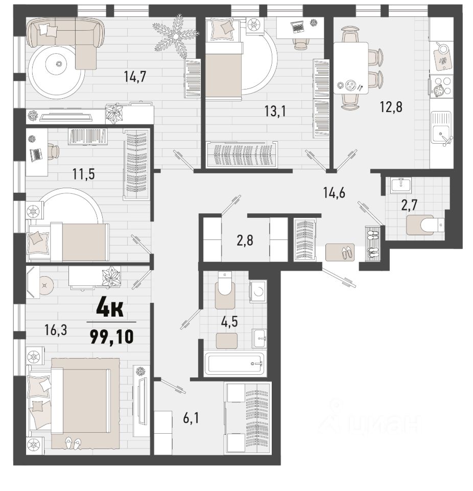 Продаётся 4-комнатная квартира в строящемся доме (Дом 3В), срок сдачи: II-кв. 2027, общей площадью 99.1 кв.м., на 5 этаже. Жилой комплекс ''Барса'' расположился в самом живописном Южном районе Новороссийска, всего в 15 минутах ходьбы от пляжа ''Алексино''. Море будет видно даже из окон невысоких этажей. Проект объединяет просторные квартиры с панорамными окнами, продуманные зоны отдыха и площадки для спорта, прогулочный бульвар, беседки и уникальные арт-объекты. В жилом комплексе запланированы детский сад на 380 мест и школа на 1 750 мест.