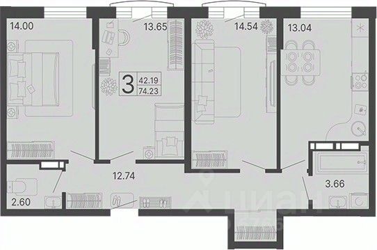 Общая площадь74,23 м2