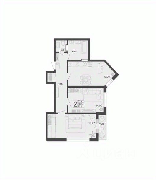 Общая площадь70,01 м2