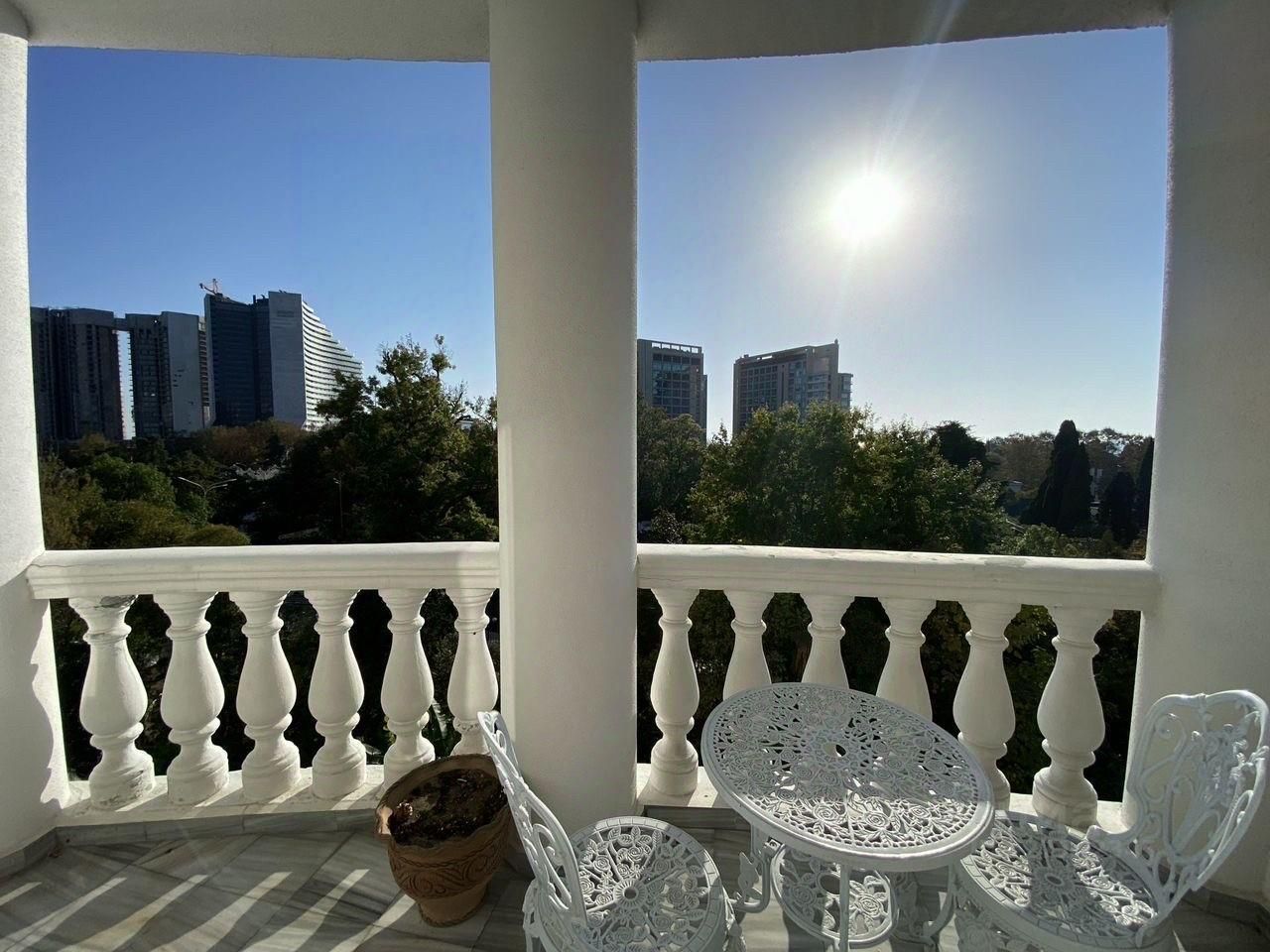 Продаётся трёхкомнатная квартира в самом сердце Сочи, неподалёку от Художественного музея и Центральной набережной. Жилой дом клубного формата располагает закрытой охраняемой территорией, парковочными местами, зоной для барбекю и отдыхом, детской площадкой и спортивной зоной. Просторная квартира отличается качественным современным ремонтом, выполненным профессиональным дизайнером. Возможна продажа вместе с мебелью и техникой. Внутренняя планировка включает две отдельные спальни и большую объединённую кухню-гостиную. Квартира оборудована открытой террасой, откуда открывается живописный вид на город и морское побережье. Это одна из наиболее привлекательных локаций для проживания, досуга и выгодных вложений в недвижимость Сочи.
