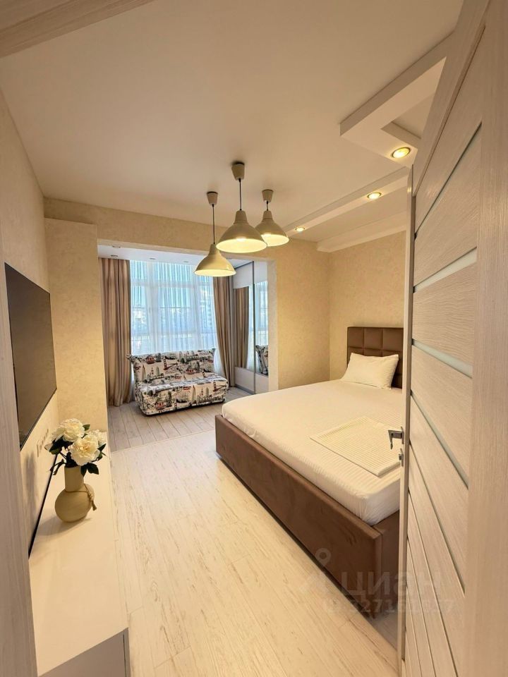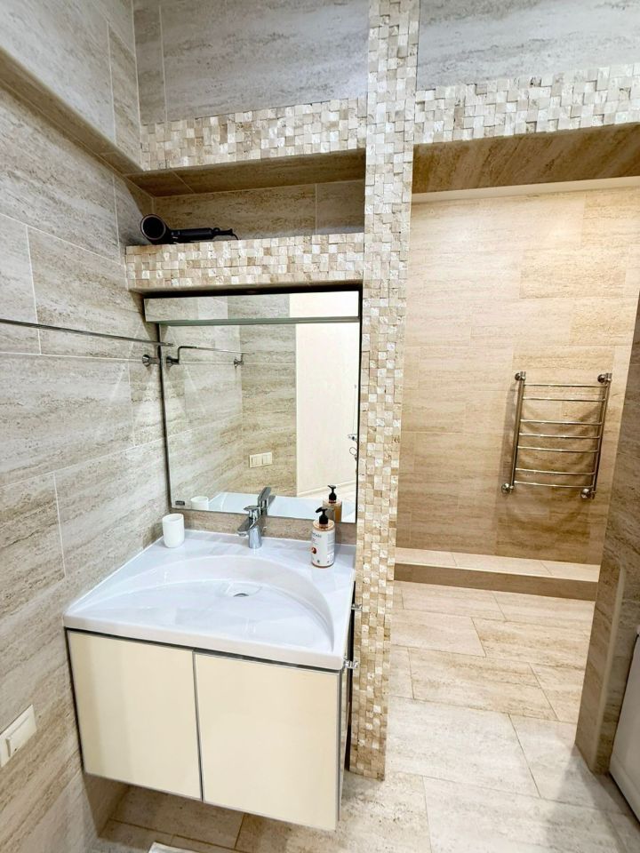 Квартира в самом центре Сочи, расположена на 9-м этаже 25-этажного монолитного дома бизнес-класса, построенного в 2010 году. Престижная улица Первомайская.