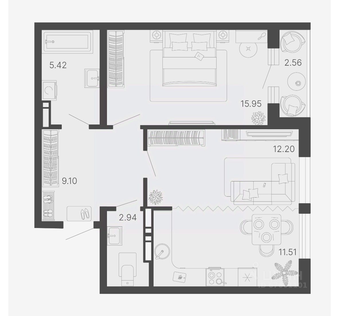 Общая площадь58,4 м2