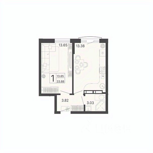 Общая площадь33,88 м2