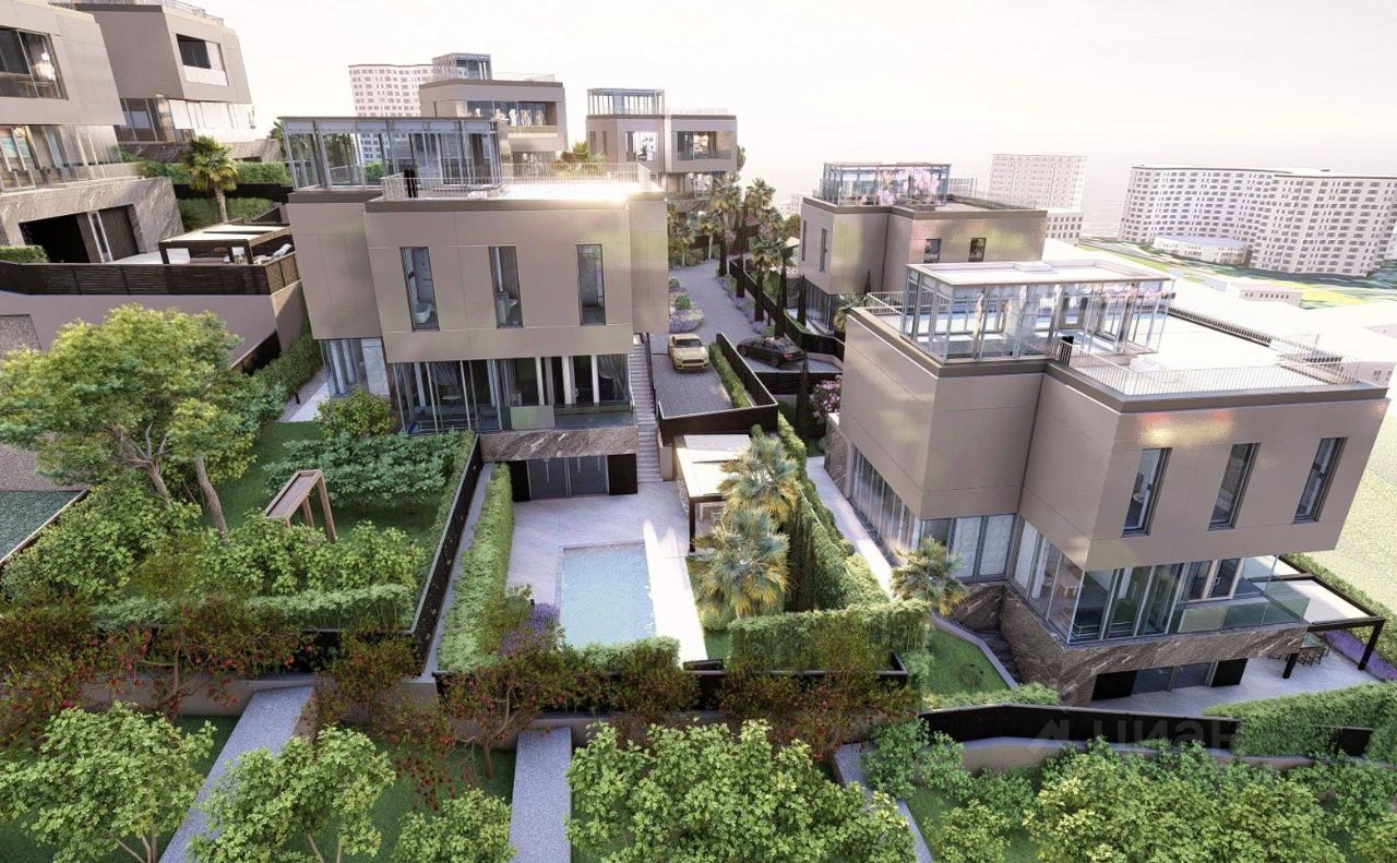 Коттеджный комплекс состоит из участков от 5,6 до 6,8 соток с домами от застройщика. Земля имеет статус ИЖС, возможно оформление постоянной регистрации. Здания строятся по монолитной технологии с вентилируемыми фасадами, облицованными керамогранитом. Архитектурные решения выполнены в современном стиле, а надежные материалы обеспечивают долговечность конструкций. В проекте предлагаются двухэтажные коттеджи площадью 300 кв. м. В домах установлены панорамные окна, из которых открывается вид на национальный парк. Высота потолков достигает 3,8 м. Отделка - подчистовая: стены оштукатурены и готовы к финишным работам. Для комфорта жильцов предусмотрены инженерные коммуникации: центральное водоснабжение и канализация, индивидуальные газовые котлы, электричество мощностью 15 кВт. Подключен оптоволоконный интернет через оптический кабель. На территории обустроена стоянка, работает система охраны с видеонаблюдением и контролем доступа. Комплекс расположен в Сочи, в районе Мамайка, в 20 минутах транспортом от центра города. Проект находится всего в 300 м от моря и одного из самых широких пляжей города - Куба. В пределах 15 минут пешком доступны школа, детский сад, магазины, аптеки, кафе, салоны красоты и пункты выдачи. До президентской резиденции Бочаров ручей можно добраться за 20 минут транспортом.