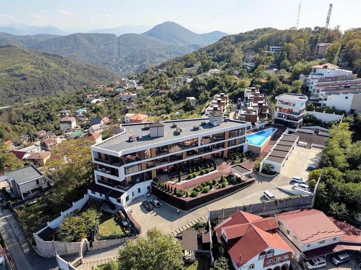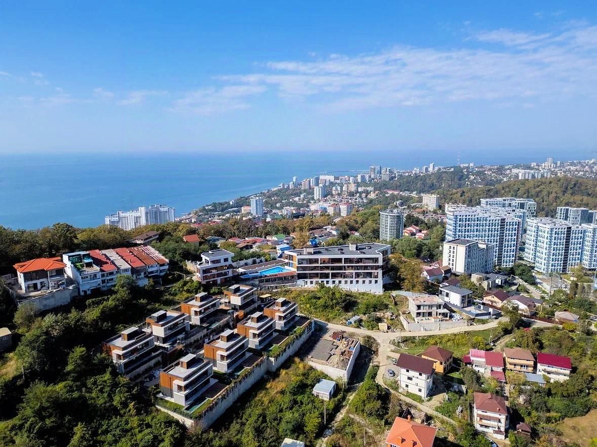 Квартира - 62 м2, расположена в мкр. Бытха (верх). Тихое живописное место с круговой панорамой на море, горы и побережье Сочи.