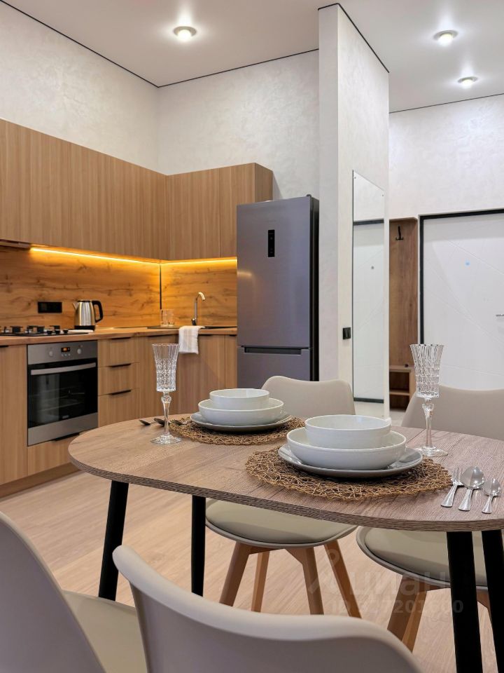 Характеристики: •Выделены: кухня-гостиная, большая спальня, вместительная гардеробная комната, прихожая, санузел с душевой . •Есть вся необходимая мебель и техника для комфортного проживания. •2-х спальная кровать + 2-х спальный диван. •2 кондиционера, холодильник, встроенная плита и духовой шкаф, микроволновка, стиральная машина с сушкой, телевизор. Wi-Fi, тёплые полы, двухконтурный газовый котёл.