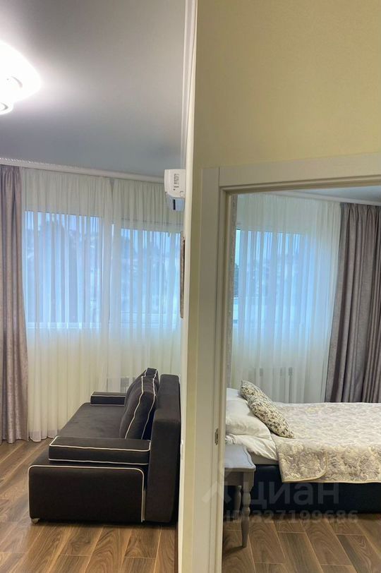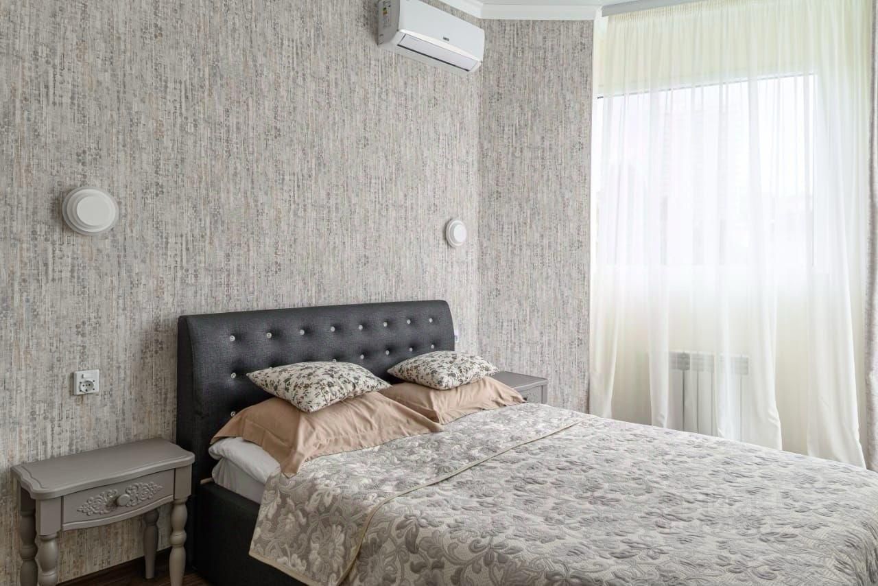 В квартире выполнен дорогой современный ремонт. Выделена просторная спальня и большая кухня-гостиная.