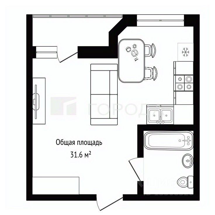 Общая площадь составляет 31,6 квадратных метров, включая просторную кухню площадью 10 квадратов. Здесь достаточно пространства для творчества и комфорта всей семьи.
