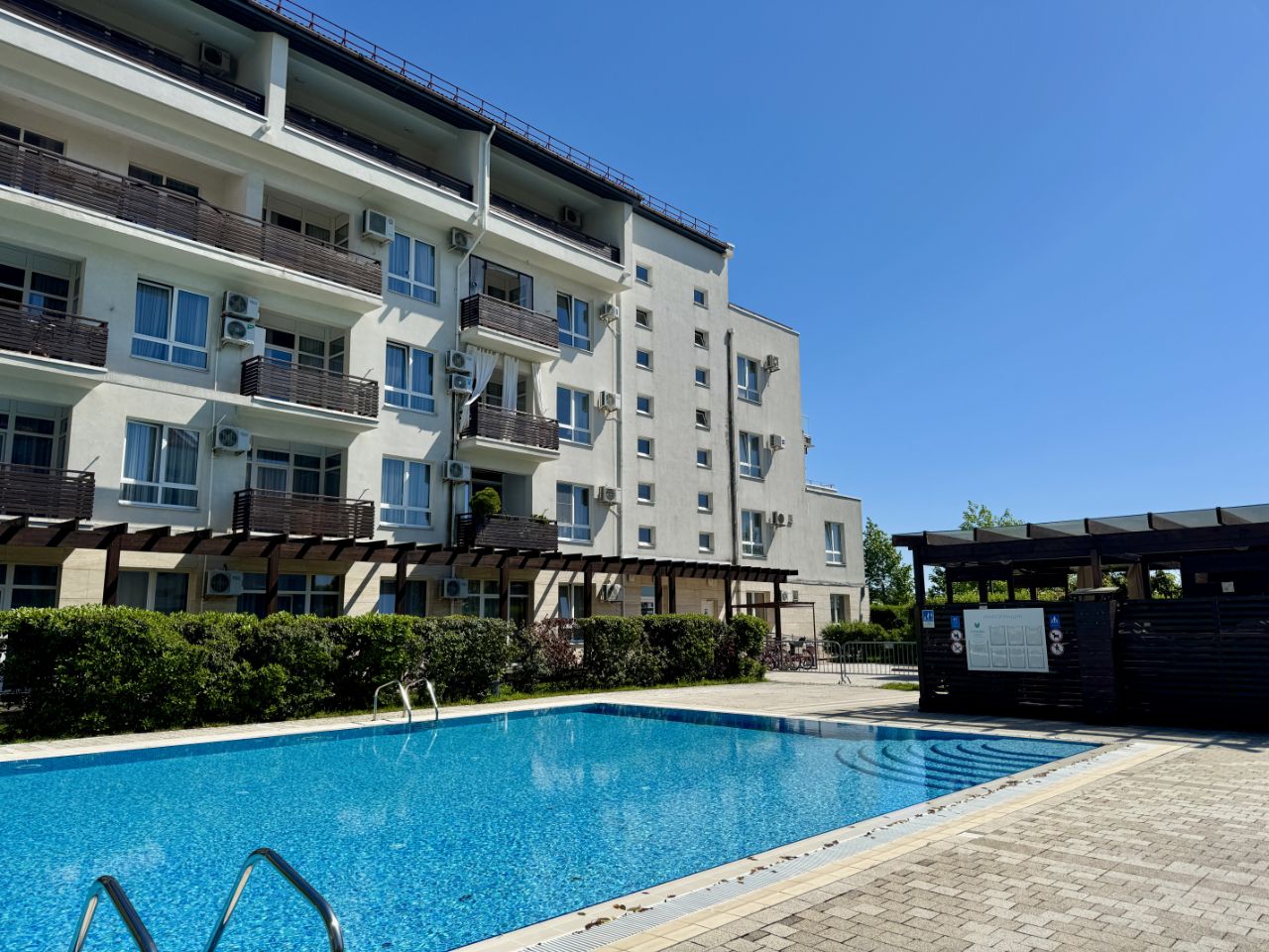 Доступ к бассейнам комплекса, всем зонам отдыха, прогулочной зоной. До набережной Сириуса 5 минут хотьбы, пешая доступность до всех олимпийских объектов.