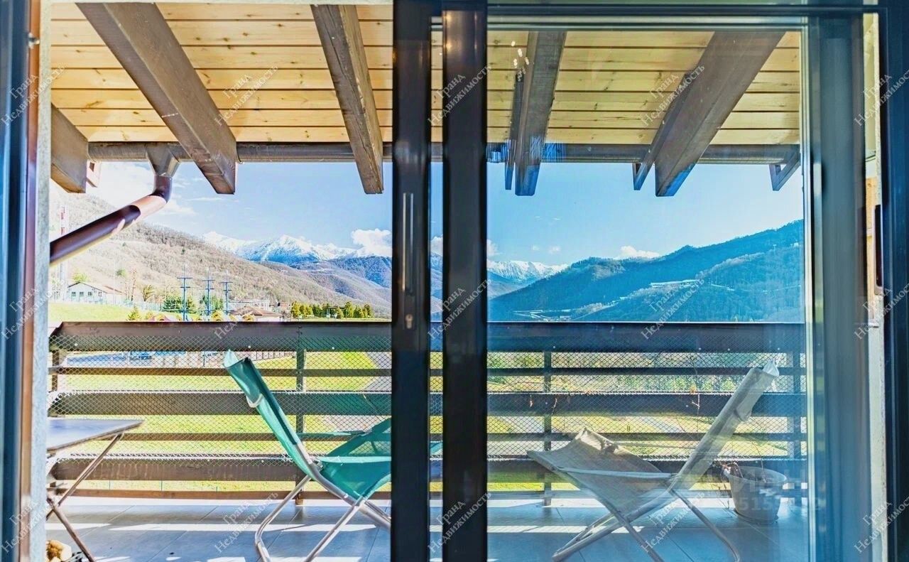 Распланирована в просторную кухню-гостиную, спальню, детскую, сан. узел и террасу, с которой открывается потрясающий вид на горы.