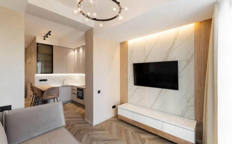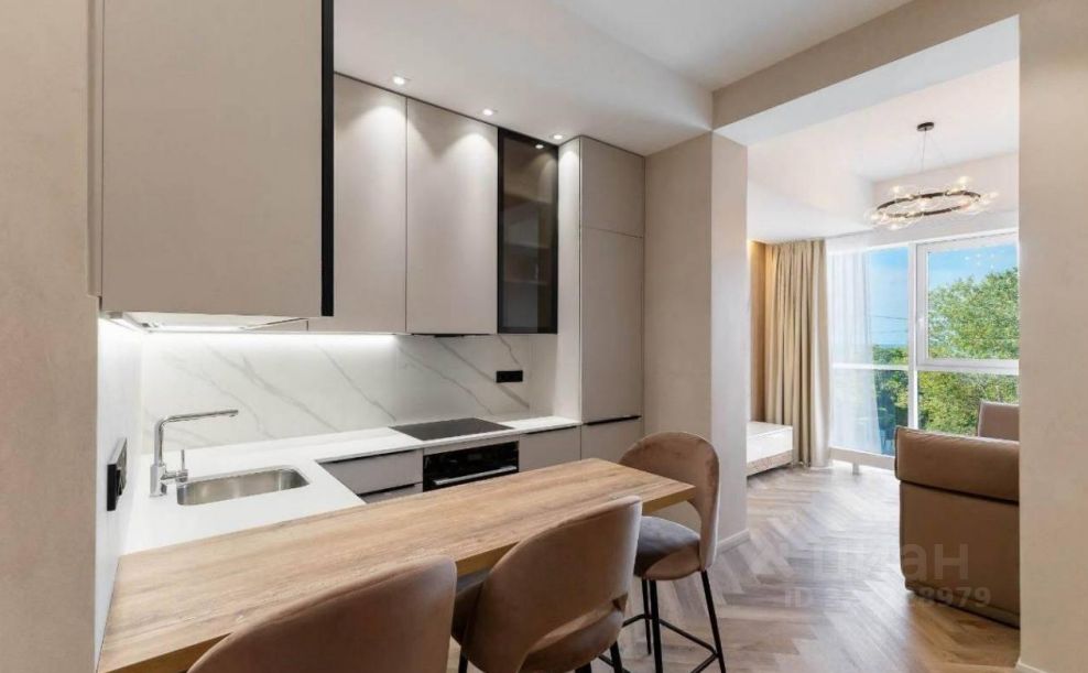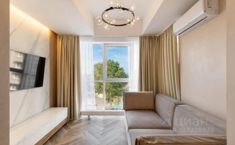 Планировочное решение: кухня-гостиная, выделенная спальня, гардеробная. Панорамное остекление с видом на море. Ремонт по индивидуальному дизайн-проекту, делали для себя. Вся мебель и техника остается.