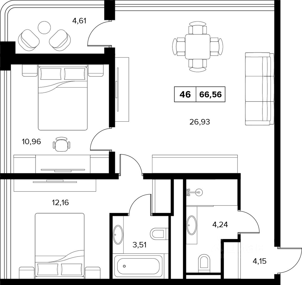 Общая площадь66,56 м2
