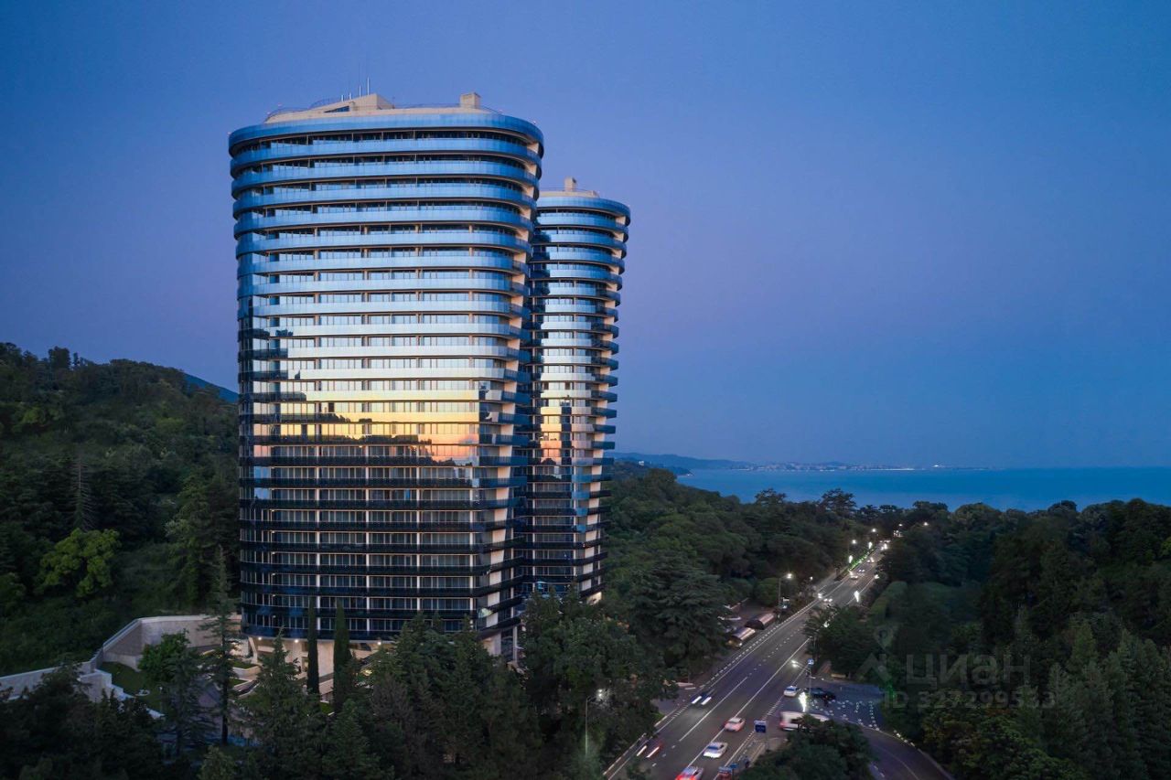 Авторский архитектурный проект, с двуобъемным фасадом и панорамными окнами, из которых открываются красивые виды на горы и море. В комплексе: Encore Fitness с 25-метровым бассейном, термальным комплексом и спа.