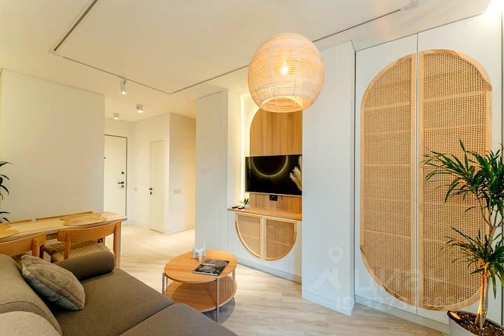Светлая уютная квартира на первой береговой линии в прекрасном районе у моря. Закрытая территория, до моря 3 минуты пешком. Деревянные элементы в интерьере, льняные шторы и плетёные детали добавляют тепла и уюта в квартире. Здесь вы забудете о времени и почувствуете себя расслабленно. Квартира у моря- ваш ключ к отдыху и вдохновению!