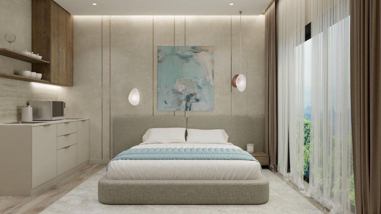 Продается номер 100н площадью 27,3 м2 в апарт-отеле Cosmos Stay Olginka Moreol'. Это гостиничный комплекс под управлением гостиничного оператора в самом сердце курортного посёлка Ольгинка. Он расположен всего в 300 метрах от моря, а из его окон открываются виды на панорамы гор и набережную. Разнообразие номерного фонда, ресторан, фитнес-зал, СПА и бассейн с разными зонами для взрослых и детей сделают времяпрепровождение гостей комфортным и расслабляющим, а расположение рядом с центральной частью Ольгинки позволит легко воспользоваться всеми возможностями курорта.
