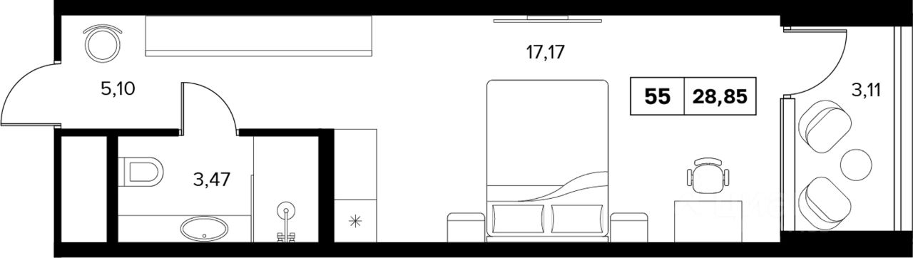 Общая площадь28,85 м2