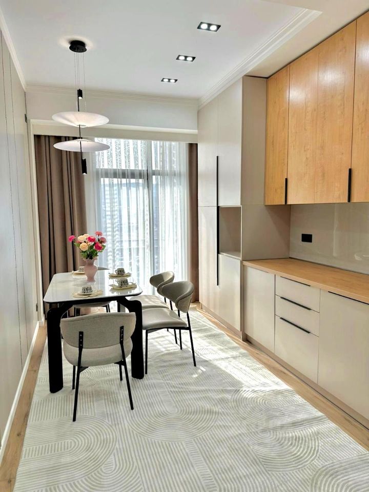 Сделан хороший дизайнерский ремонт, просторные комнаты и полностью оборудованная кухня - заходи и живи. Были использованы дорогие строительные материалы, мебель и техника остаются. Панорамное остекление, красивый вид из окна.