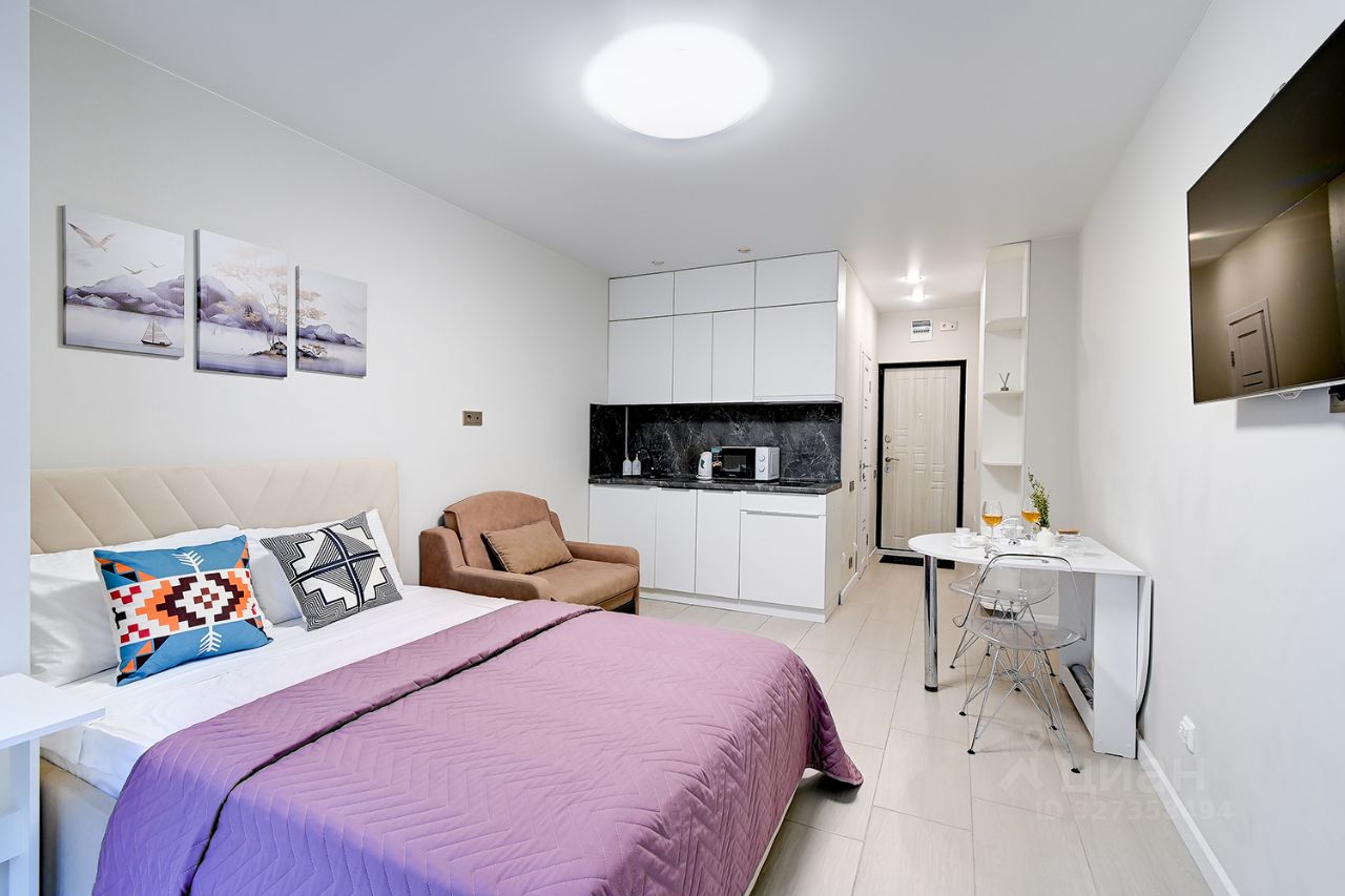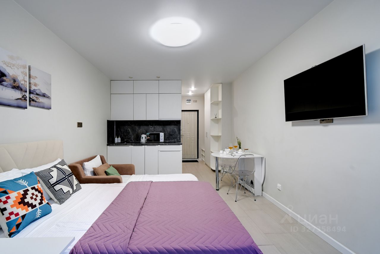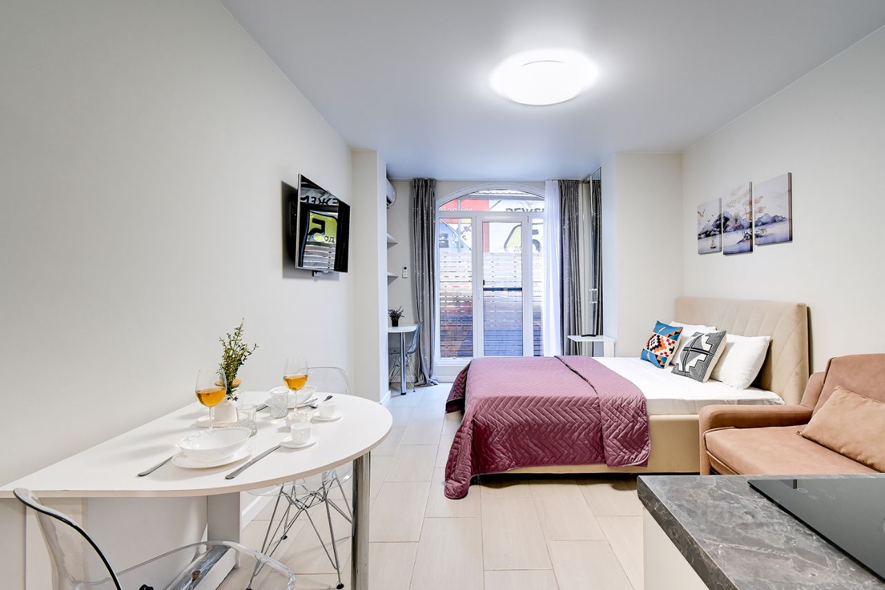 Комплектация квартиры: двуспальная кровать и комфортное кресло-кровать 80х180, постельное белье и полотенца при необходимости, кондиционер (сплит-система), микроволновая печь, электрочайник, стиральная машина, холодильник, Смарт ТВ и Wi-Fi. Тёплый пол