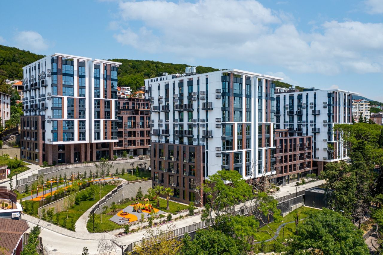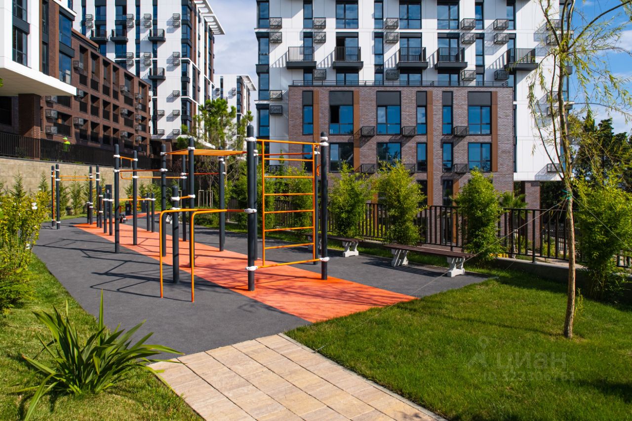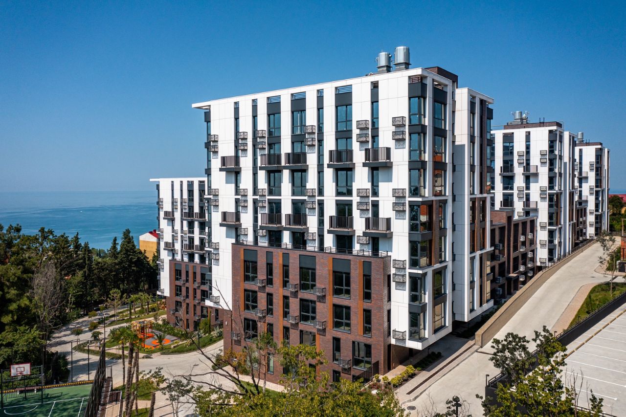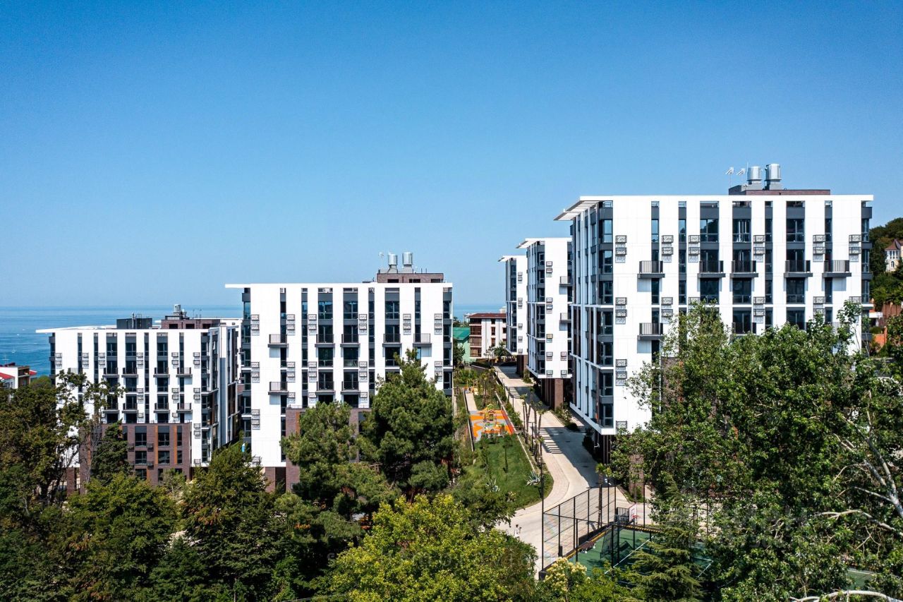 Апарт-комплекс в Приморье, Сочи. Престижная зелёная локация — 800 м до моря, 7 мин до Курортного проспекта. 3 корпуса, 48 этажей. Участок 2,3 га, из них 1,5 га — закрытая благоустроенная территория. Комплекс сдан, статус апартаментов, ФЗ214. Современные фасады, дизайнерские холлы, лифты Otis. Охрана 24/7, видеонаблюдение, закрытый доступ. Ландшафтный дизайн, эвкалипты, магнолии, кипарисы, детские и спортивные площадки, зелёные крыши. Паркинг подземный и открытый. Внутри: магазин, ресторан, кофейня, медлаборатория, ресепшн, Wi-Fi. До пляжа — 10 мин, рядом Камелия, Актер Гэлакси, школы, транспорт. До центра — 10 мин, до аэропорта — 25. Инвестиции, отдых и сдача.