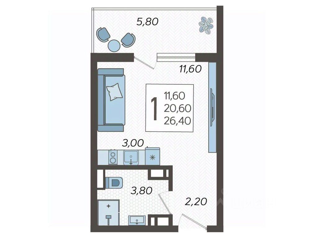 Общая площадь26,4 м2