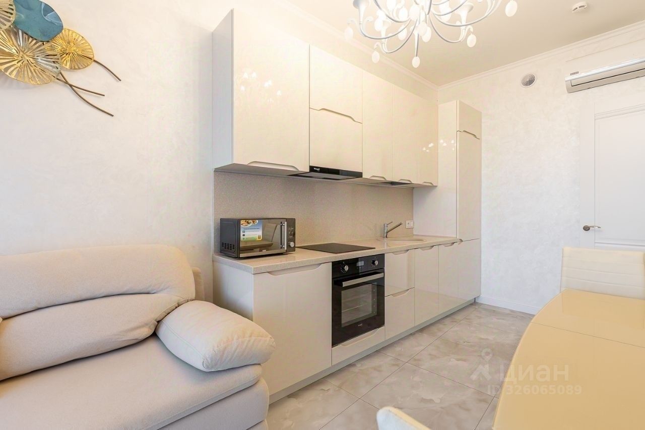В квартире выполнен дизайнерский ремонт, мебель производства Италии, встроенная техника производства Германии, две спальни, кухня-гостиная и терраса с великолепным видом на море.