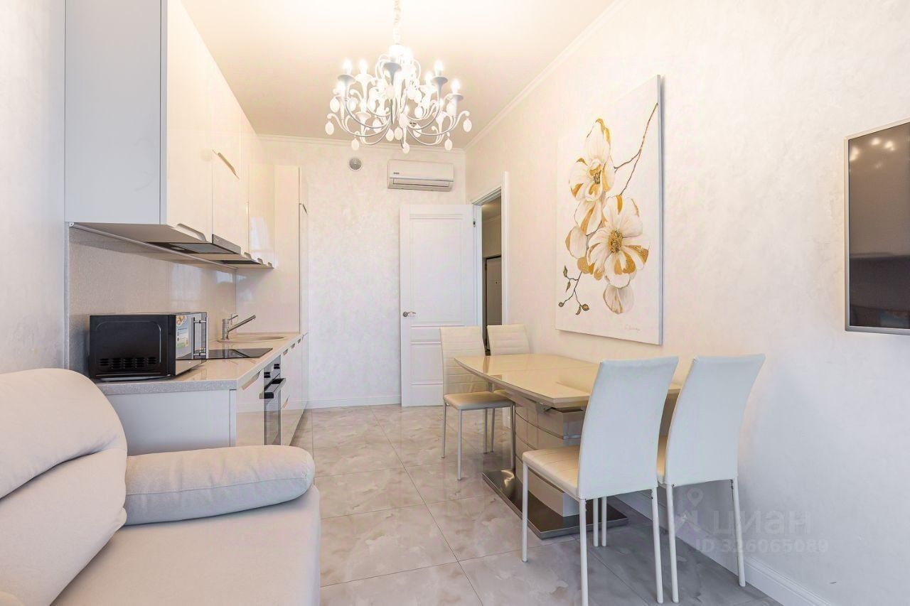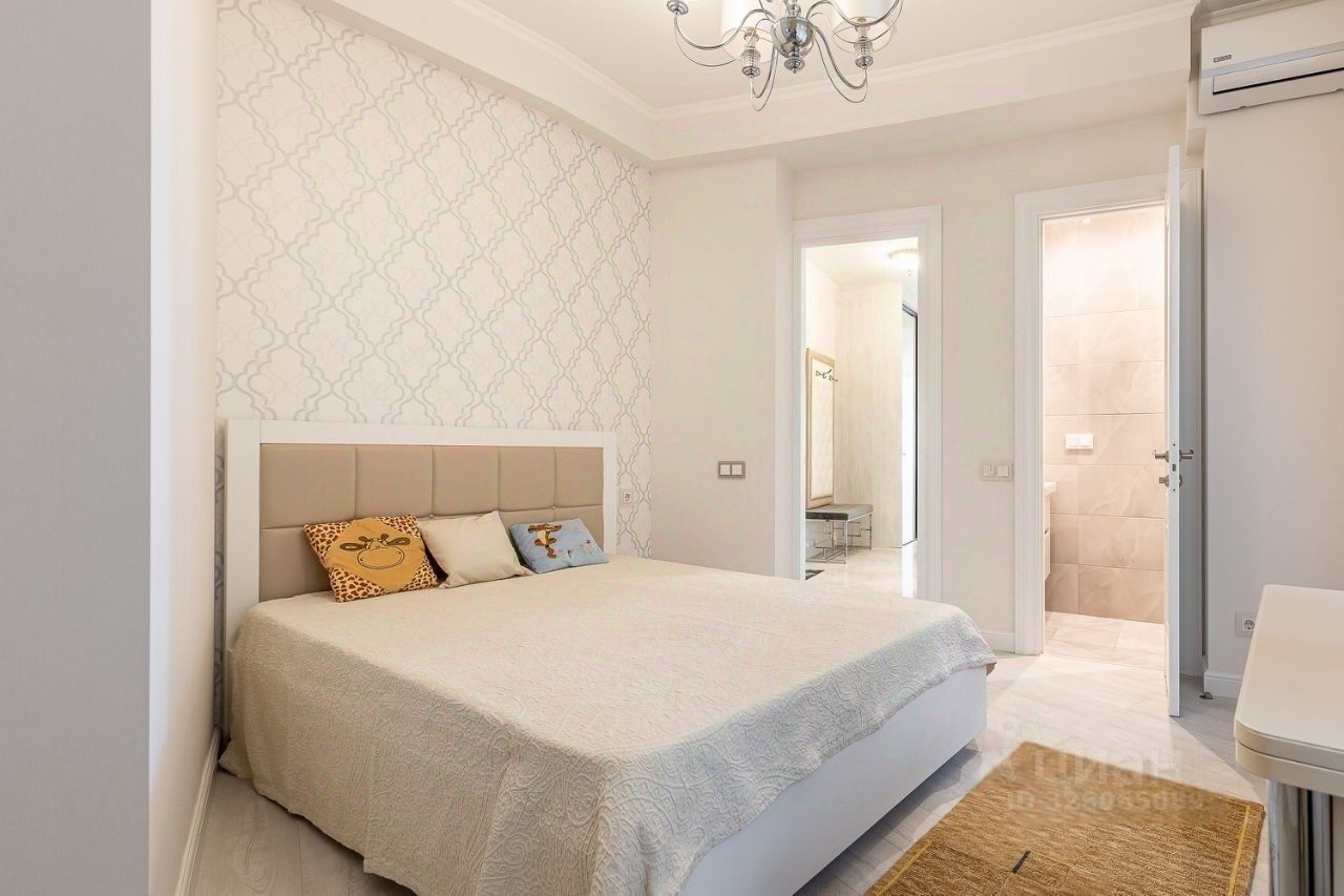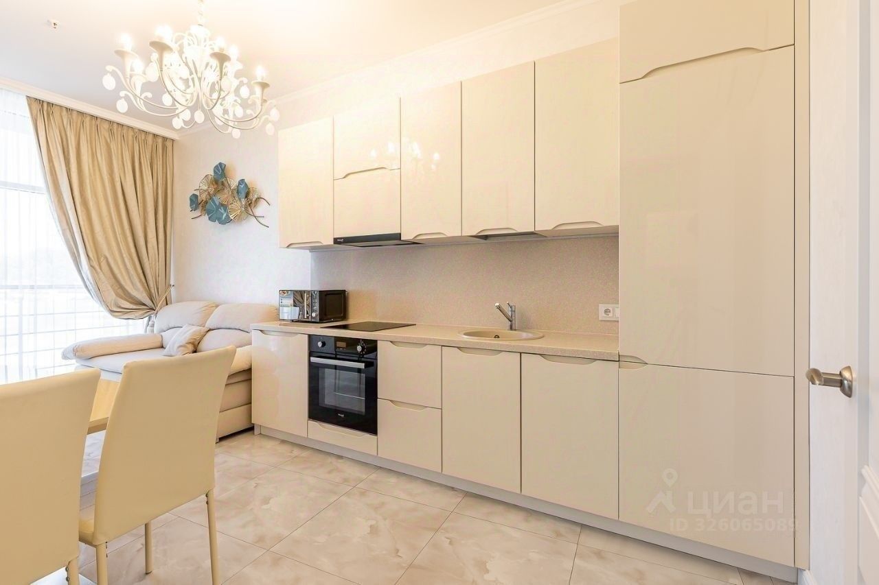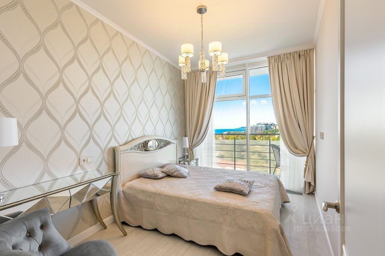В квартире выполнен дизайнерский ремонт, мебель производства Италии, встроенная техника производства Германии, две спальни, кухня-гостиная и терраса с великолепным видом на море.