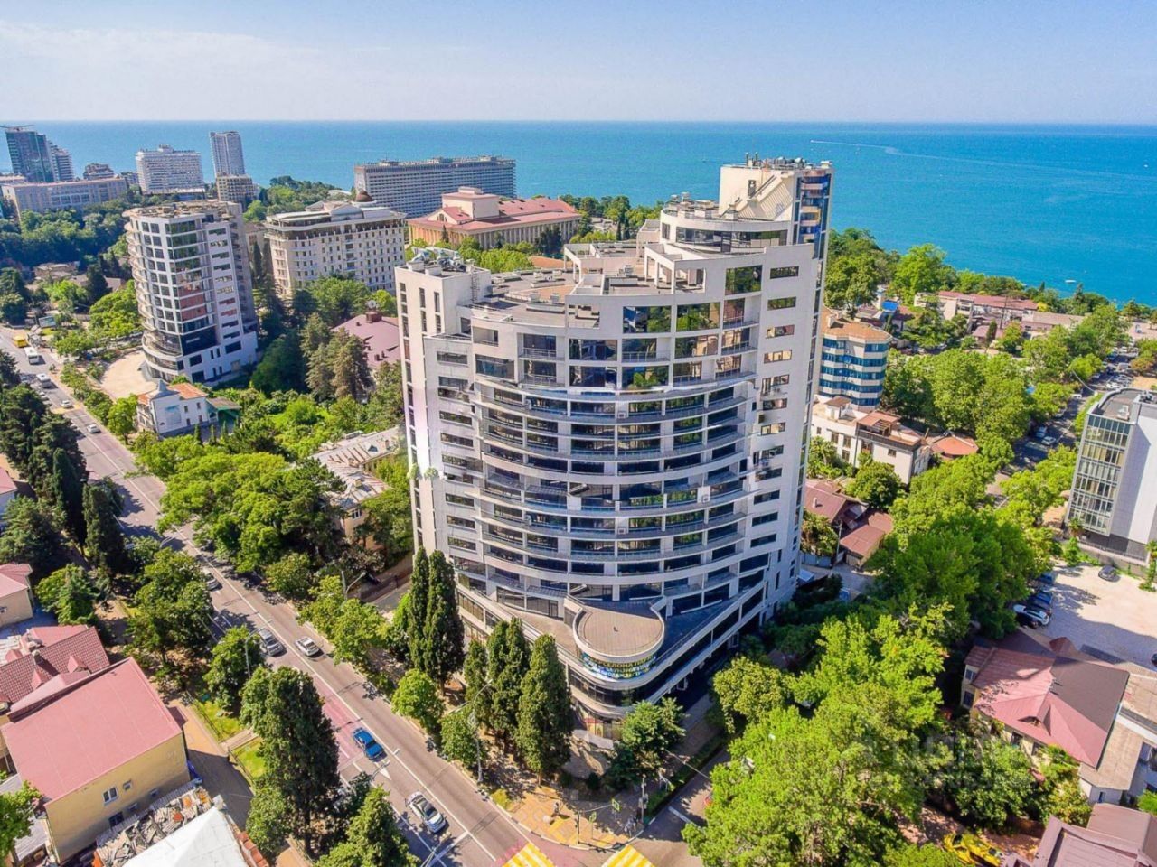 Комплекс расположен на первой береговой линии в самом центре Сочи, рядом с санаторием Черноморье, Площадью Искусств, музеем Искусств, Зимним театром, центральной набережной и в окружении самых лучших престижных ресторанов.