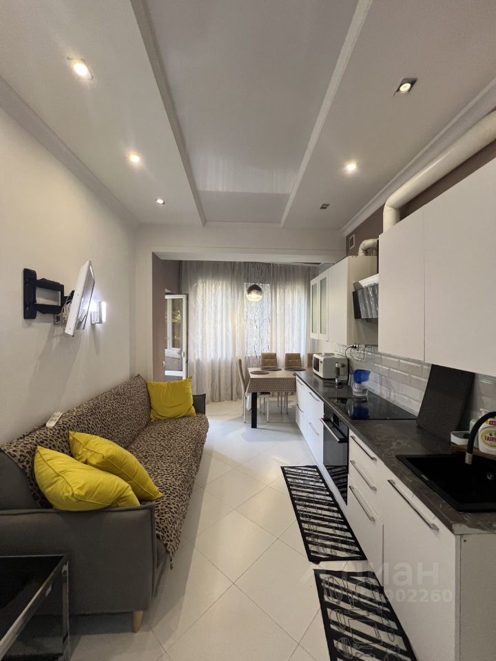 Презентабельный дом на огороженной территории! Уютная квартира после дорогого дизайнерского ремонта. Гостиная совмещена с кухней студийного типа, 2 смежные комнаты, большой совмещённый санузел, 2 балкона. Итальянский кухонный гарнитур под единой столешницей с варочной панелью, духовой шкаф, 2-х камерный холодильник, обеденная группа, 2-х спальный раскладной диван, ЖК телевизор. В спальне : 2-х спальная кровать с ортопедическим матрасом, большой шкаф, ЖК телевизор. Во второй комнате: 2-х спальная кровать, шкаф, ЖК телевизор. Кондиционеры. Большой санузел с угловой ванной и окном. Стиральная машина автомат. Презентабельная входная группа. Территория дома с детской площадкой. Отличная инфраструктура. Рядом магазины, аптеки, салоны красоты, кафе, пляж, садик и многое другое. Сезон дороже. Сергей