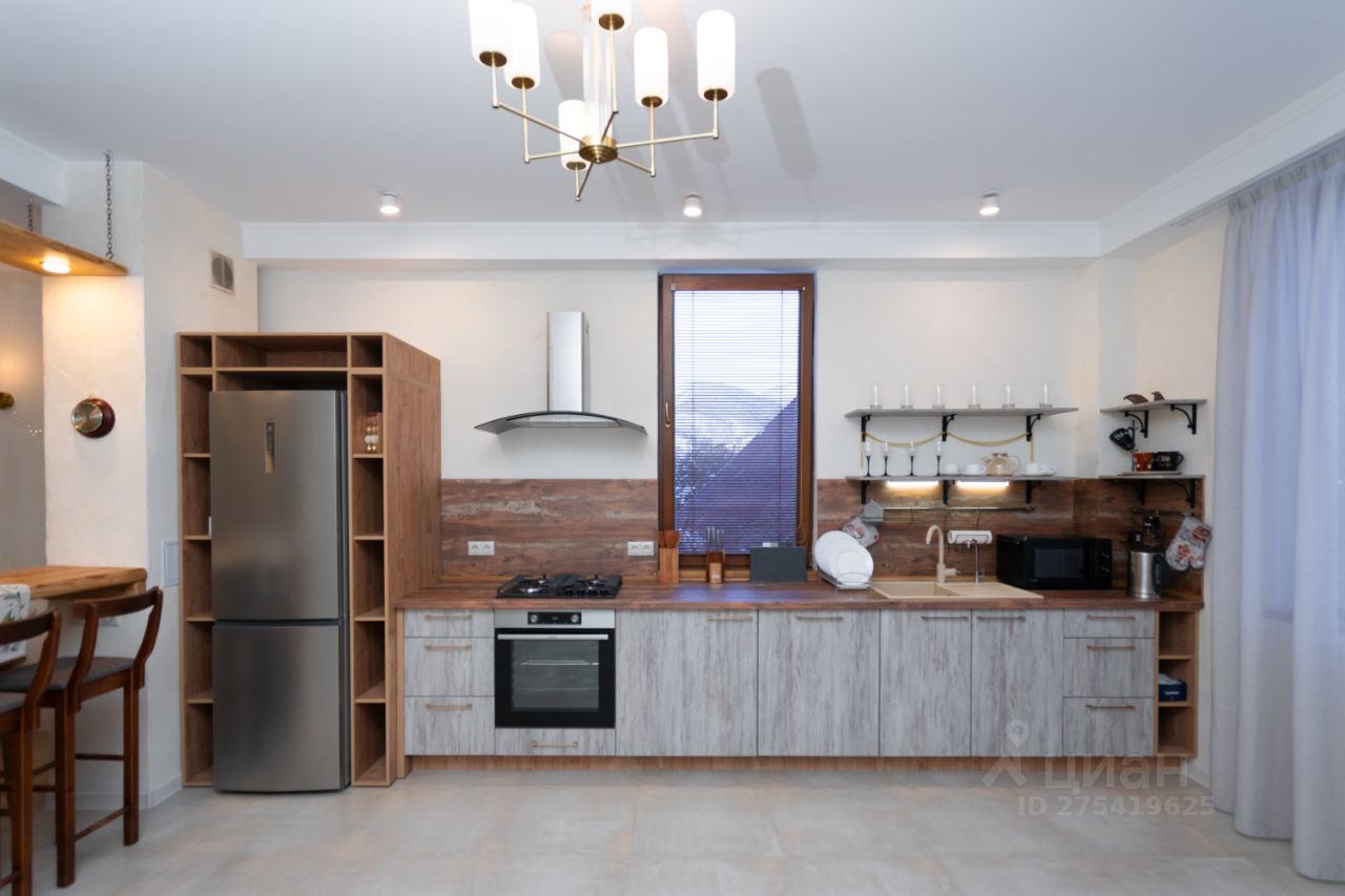Первый этаж - полностью отделан под тапочки: Кухня укомплектована. Есть посудомойка, микроволновка, духовка, газовая плита, холодильник, стиральная машинка. Спальня с санузлом.