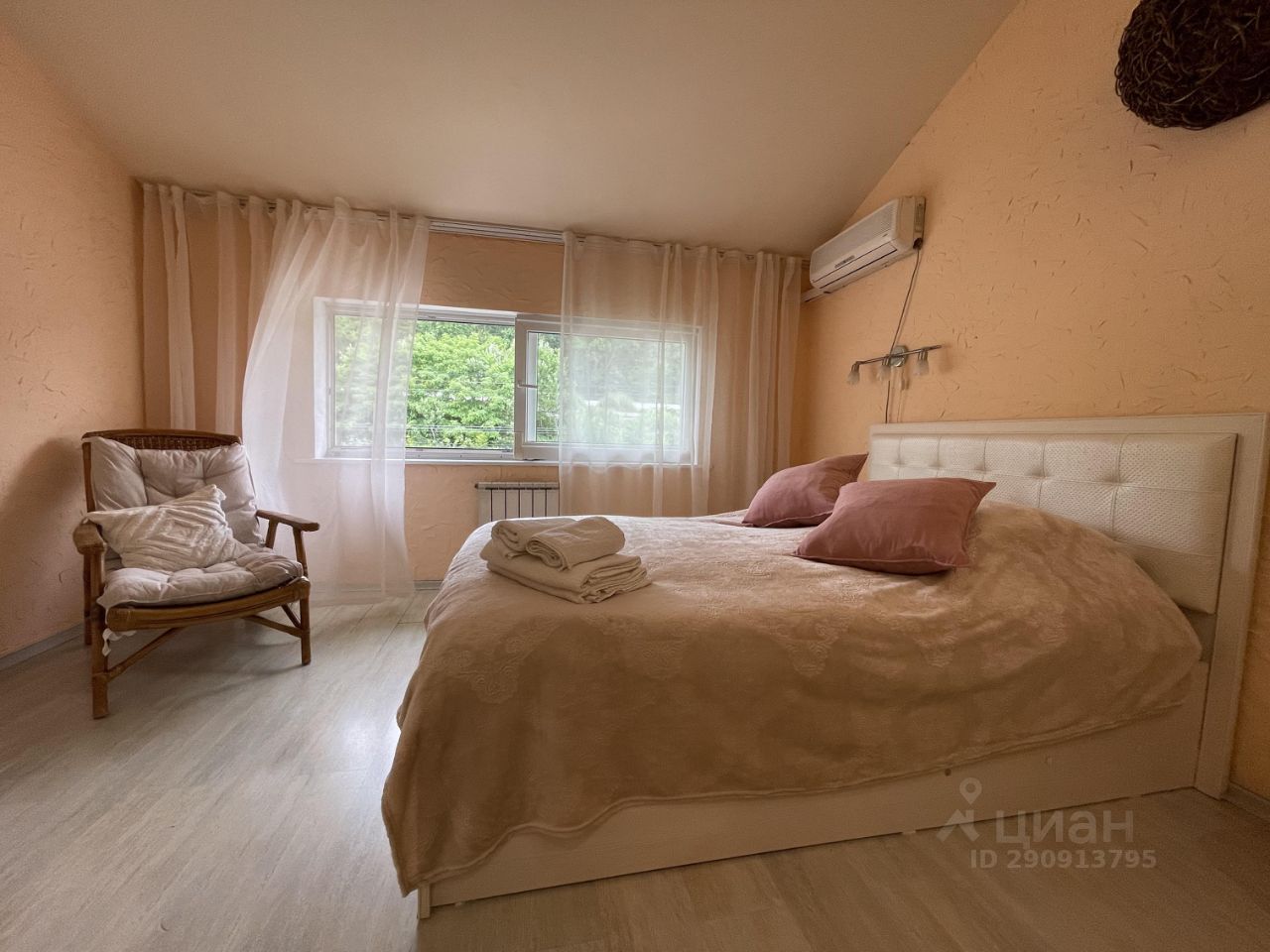В доме -3 спальни, 2 ванные комнаты, кухня/гостиная, терраса с видом на море и мангалом, балконы с видом на море. Есть отопление, wi-fi. Вся необходимая техника и мебель. В 3х минутах ходьбы - галечный пляж, остановка общественного транспорта.До центра Сочи на авто -10 минут, до центра Адлера-15 минут.