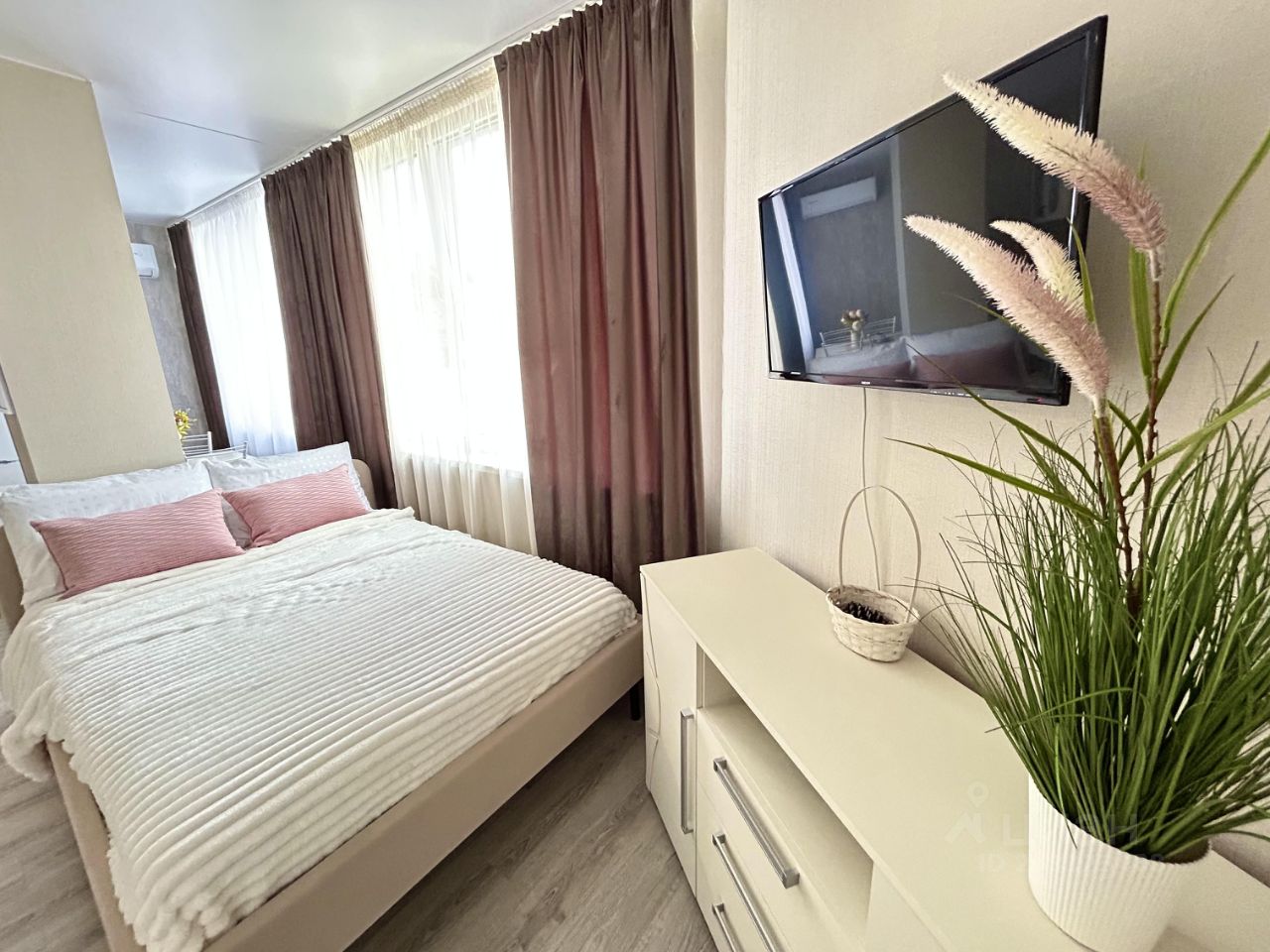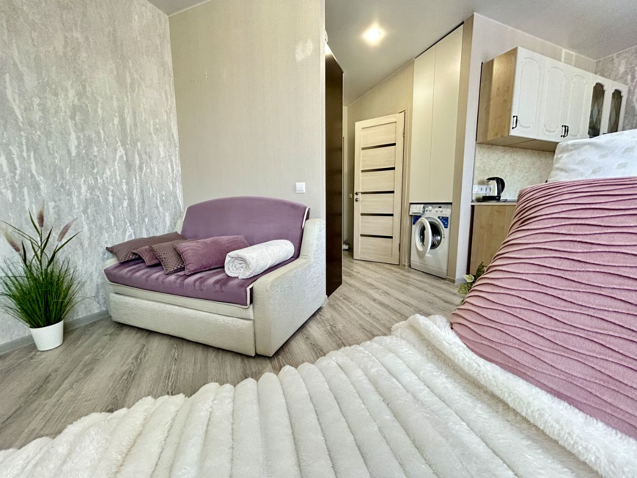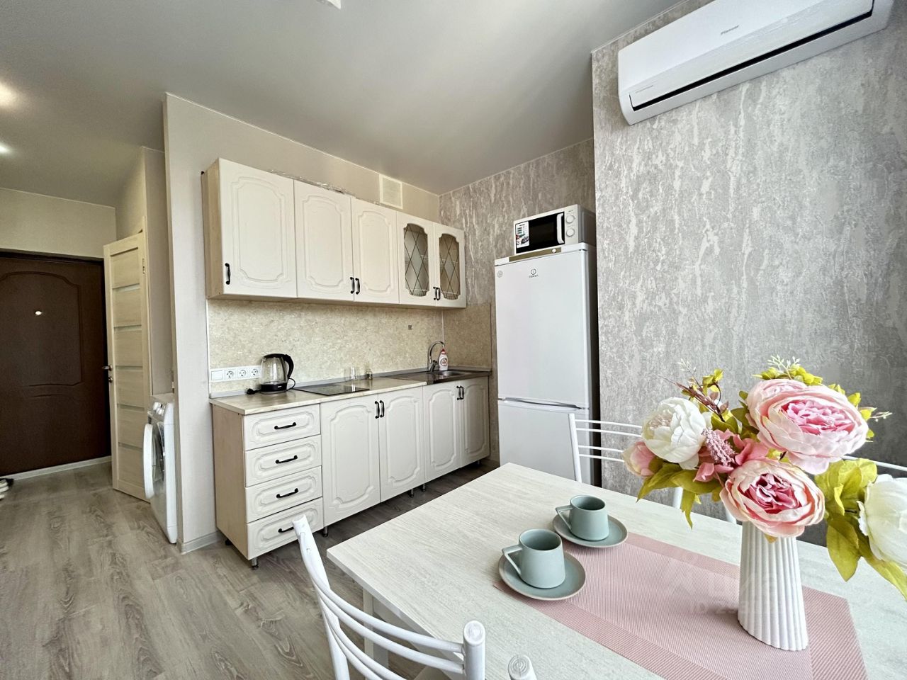 В квартире есть хороший кондиционер, проводной интернет, стиральная машина, необходимые кухонные принадлежности.