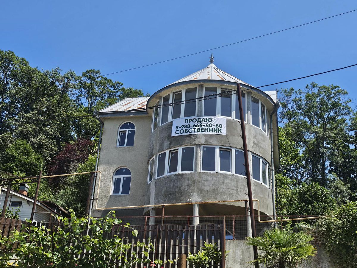 Идеальный проект опытного известного многим архитектора. Местоположение шикарное на вершине. Есть выход в лес из плодоносящего сада. Построен капитально как Фамильный дом сверх надёжно на вечно с расчётом на устойчивость к 8-ми баллам. Рядом ходит автобус. Дорога асфальт в 50 м и бетонка к дому. Вид из окна всех этажей и лоджии поражает взгляд и вызывает наслаждение обзором моря, стадиона и нескольких горных вершин курорта. Сам дом может быть спланирован по желанию нового собственника. Площадь дома значительно больше документальной за счёт большой мансарды 76 м.кв. и участок по границе дикого леса может быть расширен. Являюсь единственным собственником много лет. Дом был в консервации. В нём никто никогда не жил. Парковка на 2 авто на территории дома. Желающие купить дом, звоните для получения подробностей.