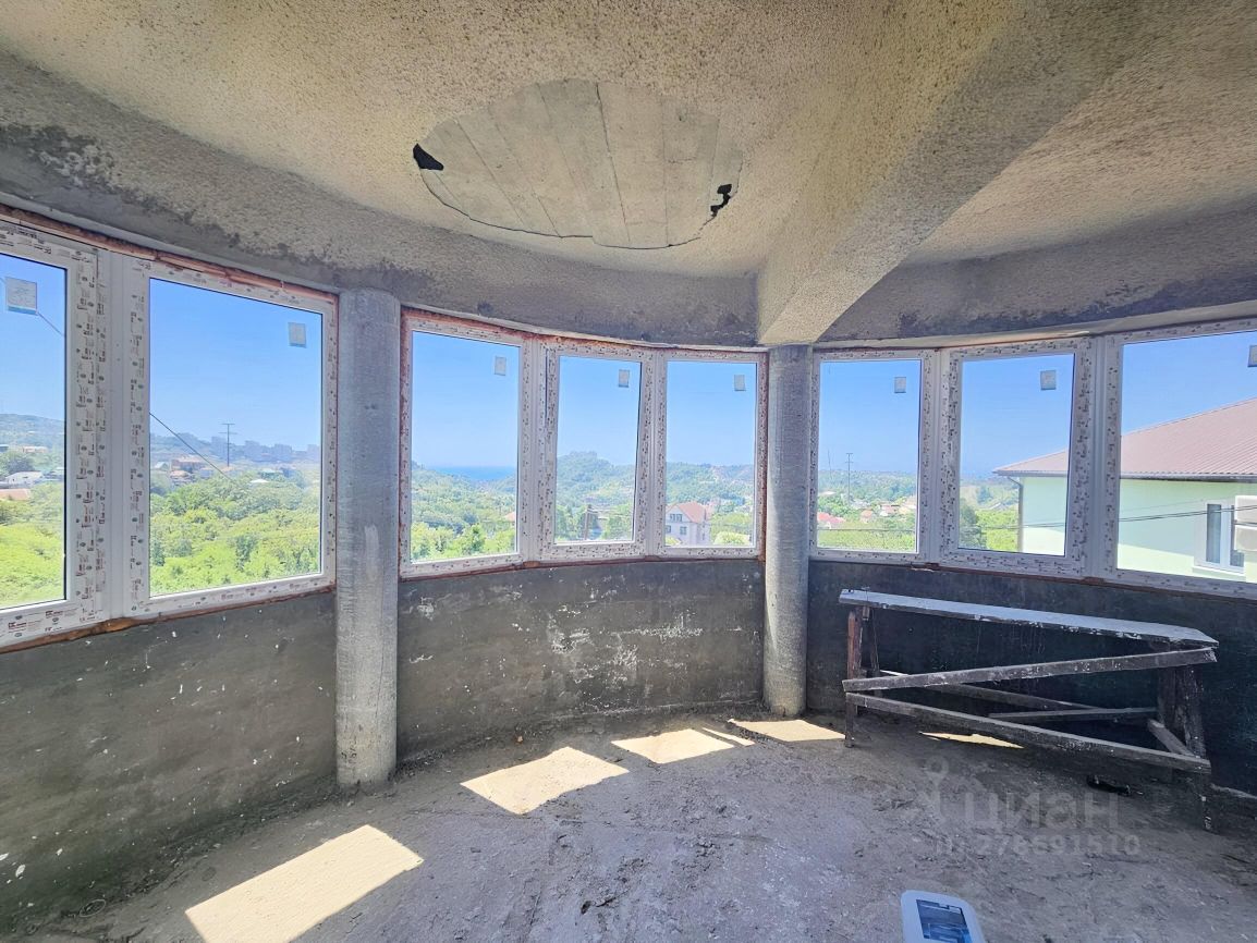 Идеальный проект опытного известного многим архитектора. Местоположение шикарное на вершине. Есть выход в лес из плодоносящего сада. Построен капитально как Фамильный дом сверх надёжно на вечно с расчётом на устойчивость к 8-ми баллам. Рядом ходит автобус. Дорога асфальт в 50 м и бетонка к дому. Вид из окна всех этажей и лоджии поражает взгляд и вызывает наслаждение обзором моря, стадиона и нескольких горных вершин курорта. Сам дом может быть спланирован по желанию нового собственника. Площадь дома значительно больше документальной за счёт большой мансарды 76 м.кв. и участок по границе дикого леса может быть расширен. Являюсь единственным собственником много лет. Дом был в консервации. В нём никто никогда не жил.